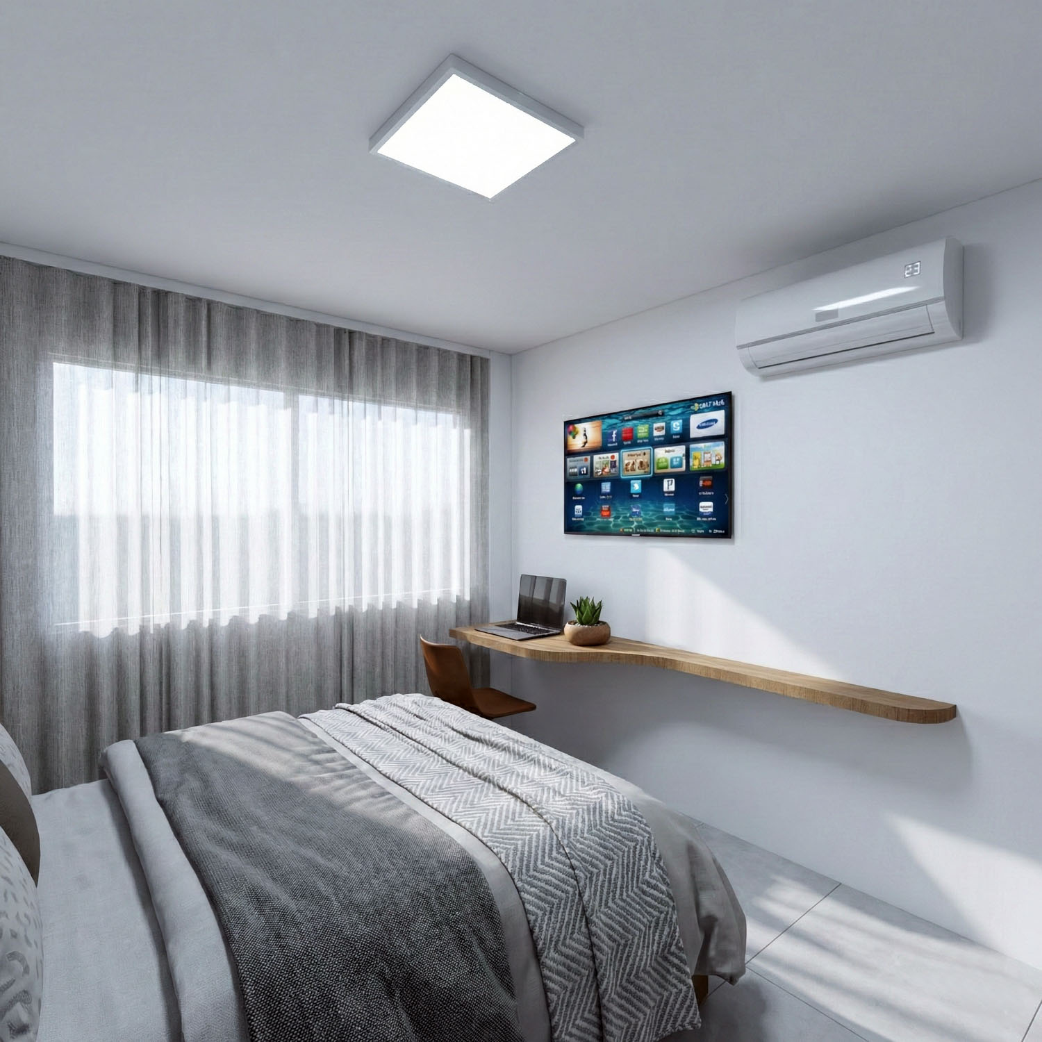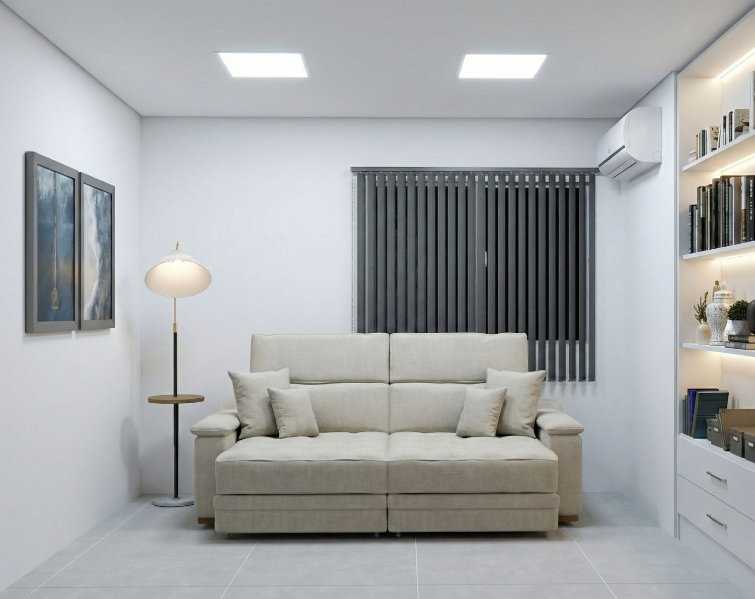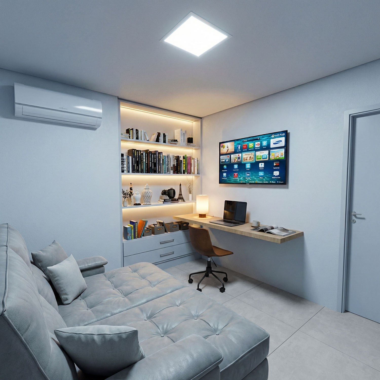 Neste projeto de interiores para um apartamento compacto, a proposta foi transformar 50m² em um espaço fluido, organizado e visualmente amplo. A marcenaria planejada integra funções, otimiza cada metro quadrado e garante unidade estética entre sala, home office e dormitório, sempre com linhas retas e uma paleta neutra que reforça a sensação de clareza e equilíbrio.