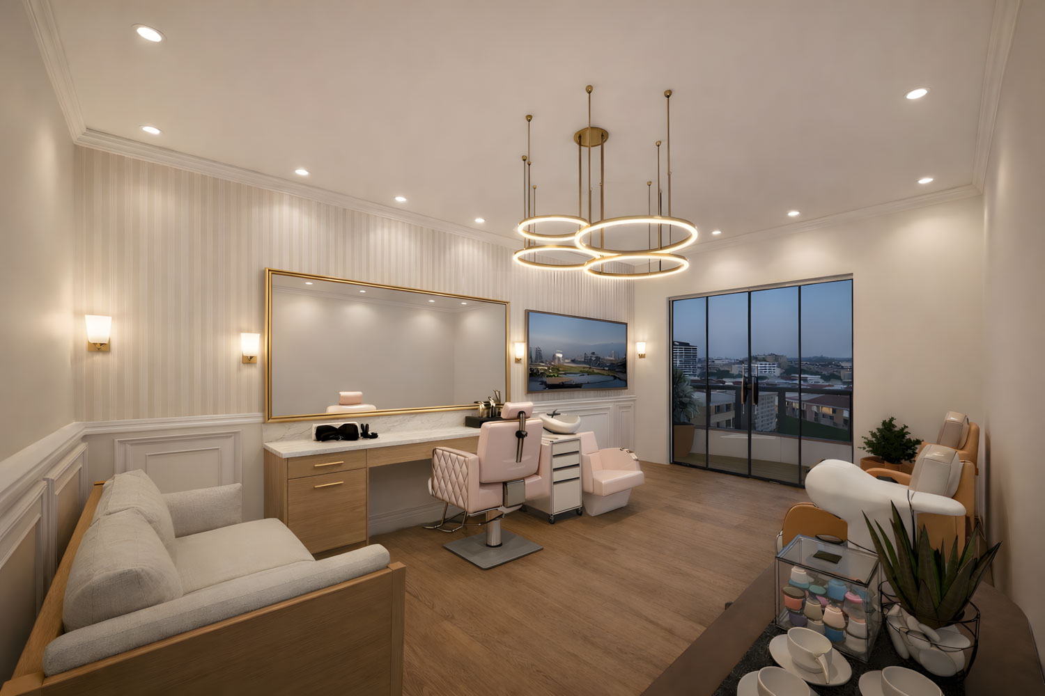 O projeto Espaço Mulher foi desenvolvido com o objetivo de criar ambientes internos que transmitissem acolhimento, sofisticação e funcionalidade. Cada detalhe do design de interiores foi pensado para valorizar a experiência das usuárias, equilibrando estética contemporânea com praticidade no uso dos espaços. A iluminação, os materiais e a paleta de cores foram cuidadosamente escolhidos para reforçar a sensação de conforto e bem-estar.